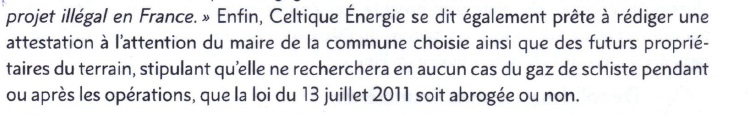 réponse stop gaz de schistePire, dans sa lettre le « Collectif pour le dynamisme économique du plateau d’Hauteville  » affirme que Celtique serait « prête à rédiger une attattestation aux maires ! .......estation à l’attention du maire de la commune choisie stipulant qu’elle ne recherchera en aucun cas du gaz de schiste« ! Prend-on les gens pour des imbéciles avec ce genre de proposition bidon et sans aucune valeur? A-t-on aussi envisagé de payer des redevances avec des billets de Monopoly?