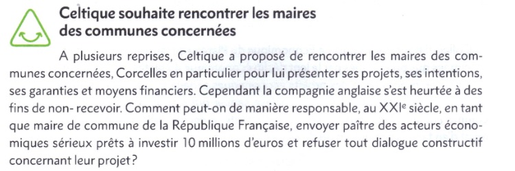 Comment ce « collectif », porte voix de Celtique, se disant responsable et intéressé par le « développement économique », peut-il traiter avec autant de dédain les élus locaux représentants de la communauté ?