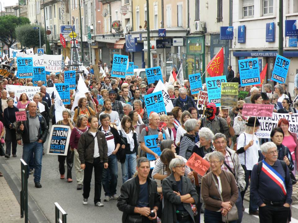 Toutefois, il ne faut pas oublier que le débat sur les hydrocarbures de schiste ne se résume pas à ces aspects techniques et juridiques aussi importants soient-ils. Leur extraction et leur utilisation ne feraient qu’augmenter les émissions de carbone et accentuer le Gaz de schiste Montelimardérèglement climatique alors que la France s’est engagée lors de la dernière COP 21 de Paris à maintenir la hausse des températures bien en dessous des 2° C par rapport au niveau pré-industriel. L’Agence Internationale de l’Energie (AIE) avait déjà signalé, dans son rapport de 2012, que pour espérer limiter le réchauffement global maximal à 2° C, il est impératif de renoncer à exploiter une grande partie de nos ressources en combustible fossile et que «notre consommation, d’ici à 2050, ne devra pas représenter plus d’un tiers des réserves prouvées de combustibles fossiles».