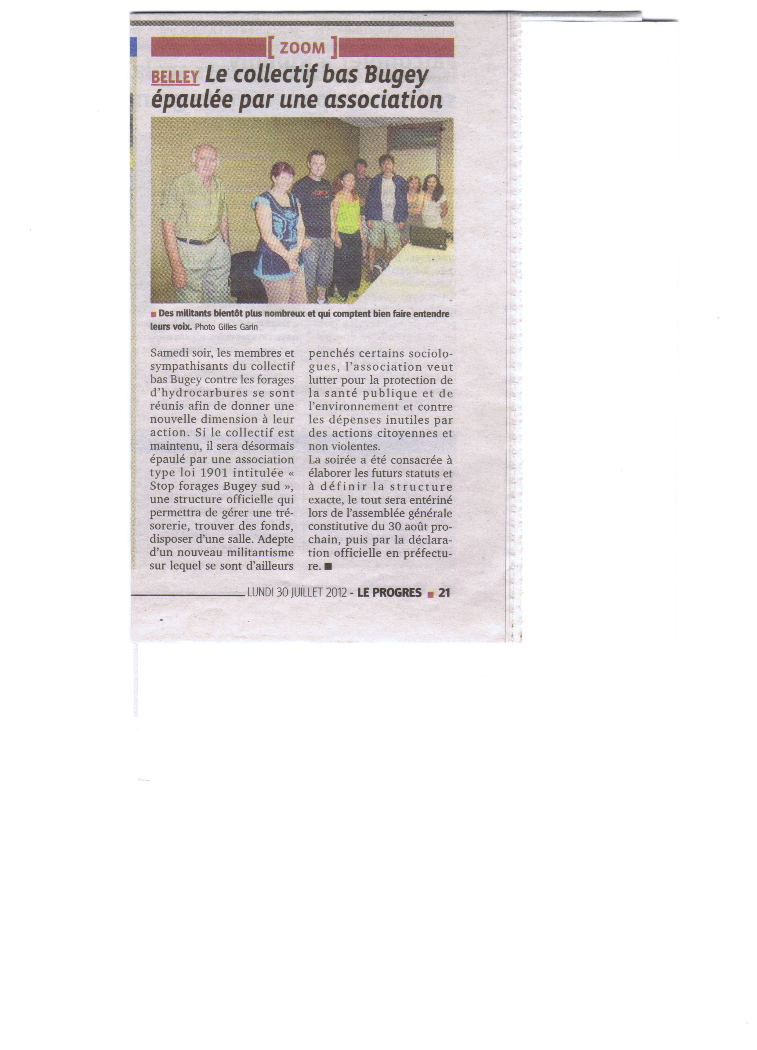 Juillet 2012 : L’association » Stop forages Bugey-Sud » voit le jour