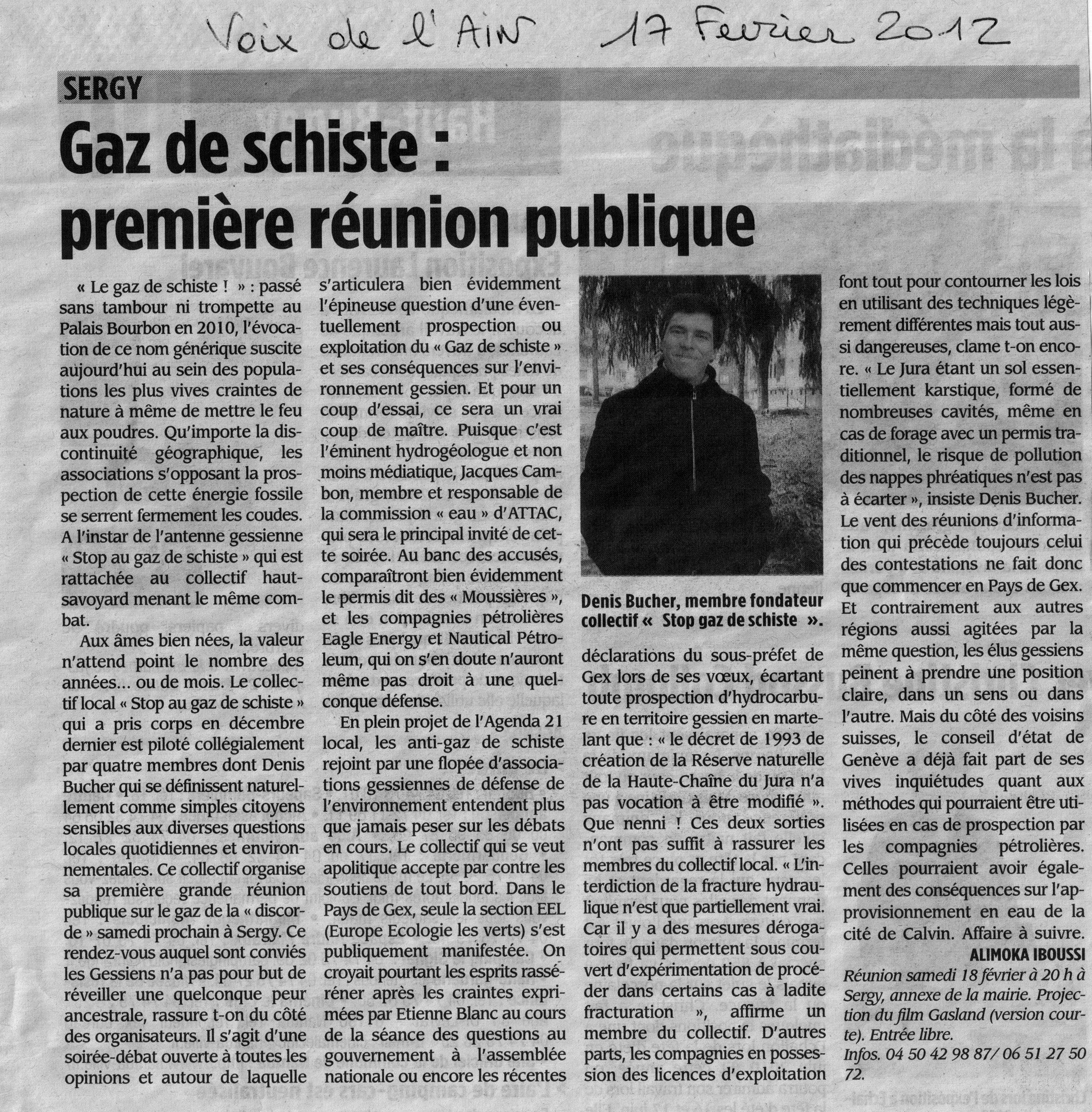 Gex: Gaz de schiste, première réunion publique