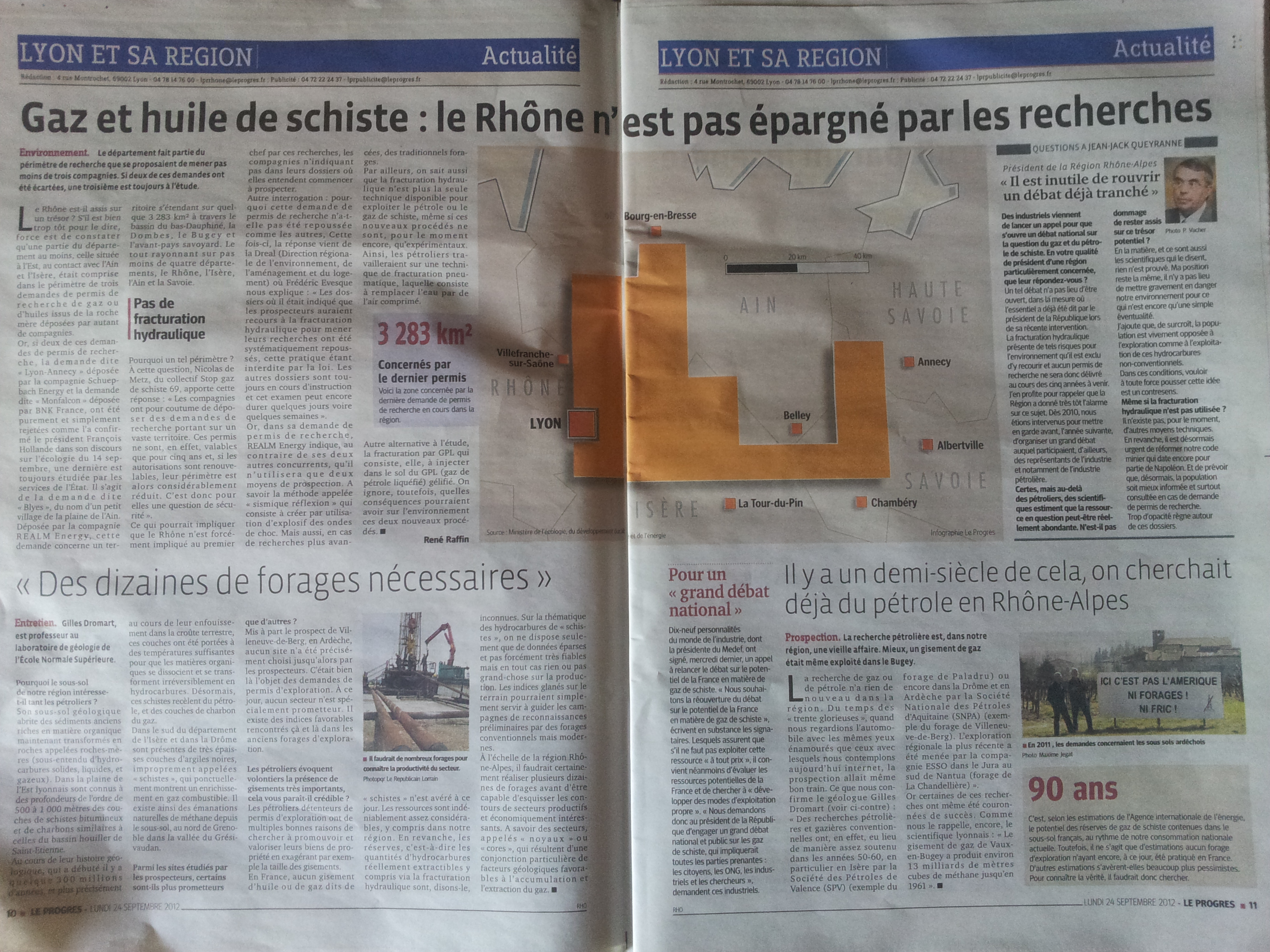 Tribune de Lyon, La Rédaction 29.03.2011: Selon le quotidien Métro, le gaz de schiste est aux portes de Lyon. En effet, une demande d’exploration des sous-sol entre le Lac Léman et Lyon a été déposée. Il ne manquait qu’au département du Rhône d’être touché par la polémique du fameux gaz de schiste… pour lire la totalité de l’article cliquer sur l’image ou ici