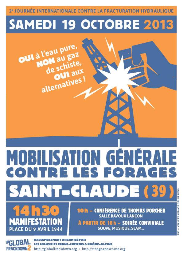 SAMEDI 9 septembre 2017 : Lac Léman – De Villeneuve (Suisse) à Noville « Pas de forages au bord du rivage! »Rassemblement et Marche dès 13h30 à Villeneuve au parc au bord du Lac de Villeneuve à Noville, au bout du lac Léman. Disons notre opposition aux projets de Petrosvibri qui veut reprendre ses recherches au forage de Noville, dans le but avéré d’exploiter du gaz. en savoir plus ici ============================================================================= SAMEDI 15 OCTOBRE 2016: GLOBAL FRACKDOWN ET MANIF CONTRE LE CETA ET LE TAFTALES RASSEMBLEMENTS EN RHÔNE-ALPES LIRE ICI Ces accords ou projets d’accords commerciaux sont la porte ouverte à l’exploitation des hydrocarbures non-conventionnels. Stoppons-les! ============================================================================= DIMANCHE 8 MAI 2016: Lac Léman – De Villeneuve (Suisse) à Noville « Pas de forages au bord du rivage! »MARCHE REPORTÉE LIRE ICI Rassemblement et Marche à partir de 14h00. Rendez-vous le dimanche 8 mai 2016 pour une marche pacifique et joyeuse de Villeneuve à Noville, au bout du lac Léman. Disons notre opposition aux projets de Petrosvibri veut reprendre ses recherches au forage de Noville, dans le but avéré d’exploiter du gaz. en savoir plus ici ============================================================================= DIMANCHE 28 FEVRIER 2016: BARJAC (30) MOBILISATION CONTRE les PÉTROLE & GAZ DE SCHISTECONTRE LA RÉ-ATTRIBUTION DU PERMIS GAZ DE SCHISTE DE MONTELIMARBARJAC Rassemblement à partir de 11h00, marche à 14h00 INFO AFFICHES TRACTS ICI L’abrogation du permis de recherche de gaz de schiste dit de Montélimar attribué à Je signe la pétition ici Arrivé en voiture: Le plan des parkings à Barjac ============================================================================= SAMEDI 28 DIMANCHE 29 NOVEMBRE 2015: PARTOUT EN FRANCE MANIFESTATIONS/MOBILISATION POUR LE CLIMATSuite aux interdictions de manifestation prononcées par l’État sur tout le territoire français, lire les alternatives proposées dans ce qui suit: Chez vous ou dans une ville voisine, la liste est tenue à jour ICI .