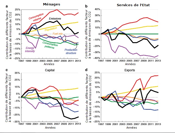 L’étude montre que plus de la moitié du déclin du charbon fut due à une baisse drastique du volume des biens consommés par la population américaine. Près d’un tiers de la baisse pourrait êtrebaisse CO2 USA baisse charbon et consommation pas augmentation gaz de schiste attribuée à des changements dans la structure de production, comprenant également la délocalisation des industries américaines vers la Chine et d’autres pays. Seulement 17% pourraient être attribuées à des changements du mix énergétique pour produire de l’énergie, et pourtant ceci n’est pas lié à la hausse de la production des hydrocarbures non conventionnels. En effet, le boom du gaz de schiste n’a pas commencé avant 2009. Et avant cela, le charbon était déjà sur le déclin.
